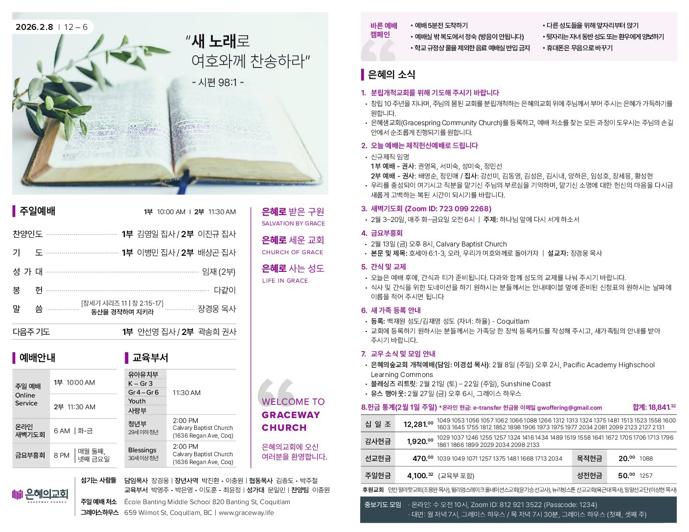 • 등록: 백재원 성도/김재영 성도 (자녀: 하율) – Coquitlam