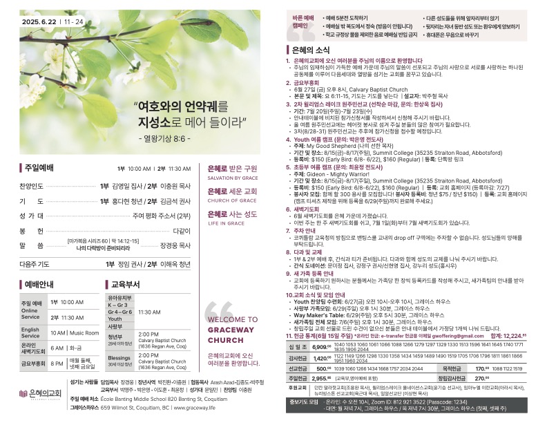• 제목: 주여, 저는 아니지요? • 말씀: 마가복음 14:17-20 <셀모임 나눔 질문> 1. 태어나고 자란 고향에 대해 나누어보아요😊 2. “주여, 저는 아니지요?” 제자들의 질문처럼, 최근 삶 속에서 어떤 상황 가운데 주님을 외면하거나 침묵한 적이 있었나요? 3. 예수님은 배신을 알고 계시면서도 여전히 사랑과 은혜로 함께 식사하셨습니다. 이런 변함없는 은혜를 경험하신 적이 있으신지 나눠보세요 * 셀의 상황에 […]